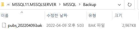 경로 지정한 폴더에 백업파일이 생성된것을 확인할 수 있다.